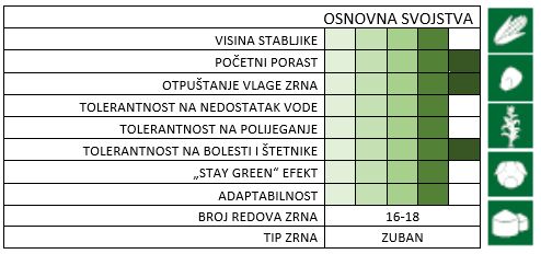 - osnovna namjena je proizvodnja suhog zrna, ali zbog krupnijih i lijepo završenih klipova prihvatljiv je i za berbu u klipu